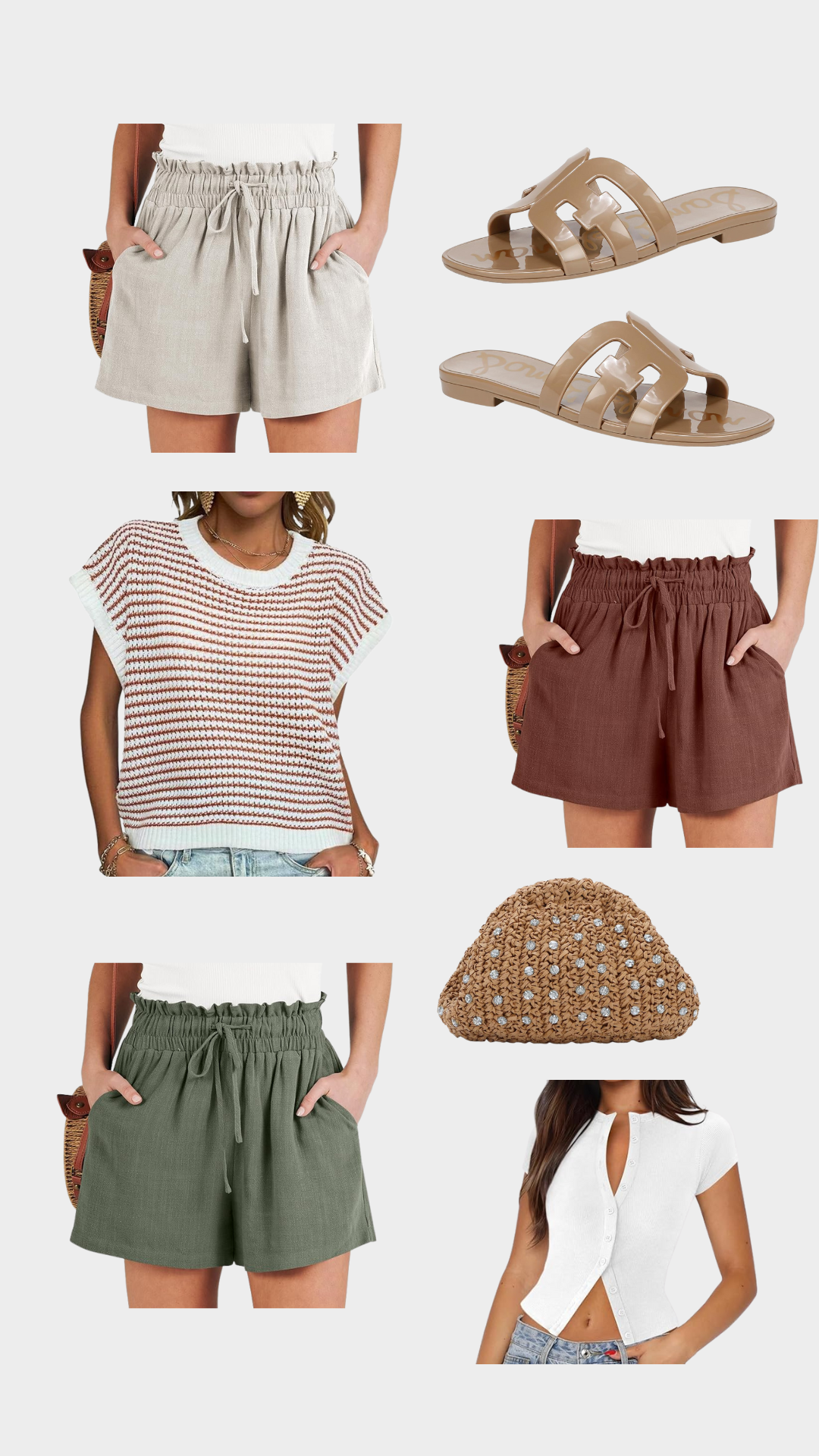 Each outfit features breathable drawstring shorts in neutral tones paired with soft, flattering tops that work for coffee runs, vacation strolls, or casual date nights. Whether you're building a capsule wardrobe or just want easy outfit ideas — these pieces are affordable staples you’ll keep reaching for.